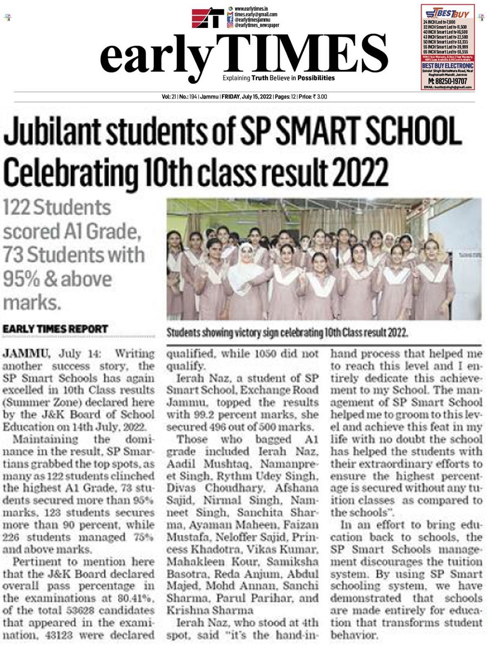 Class 10th - Result 2022- In News
