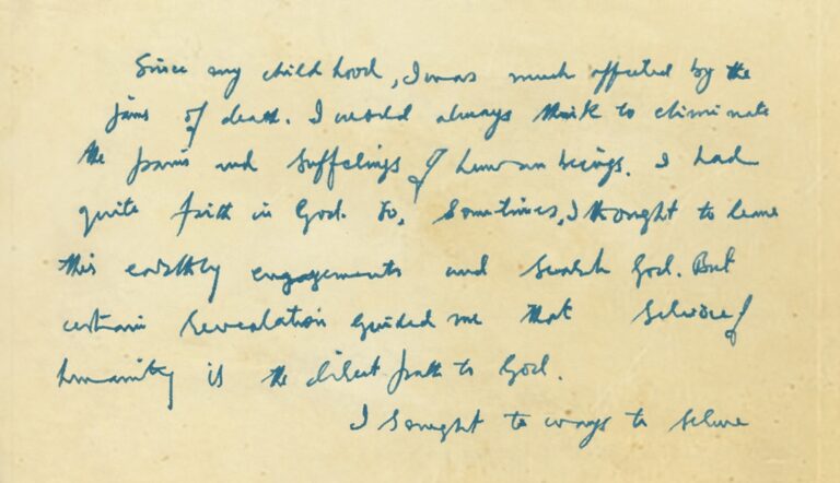Since my childhood, I was much effected by the .......... I would always think to eliminate the pains and sufferings of human beings . I had quite faith in god . So, sometimes, I thought to leave this earthly engagements and search God. But certain revelation guided me that service of humanity is direct path to God.