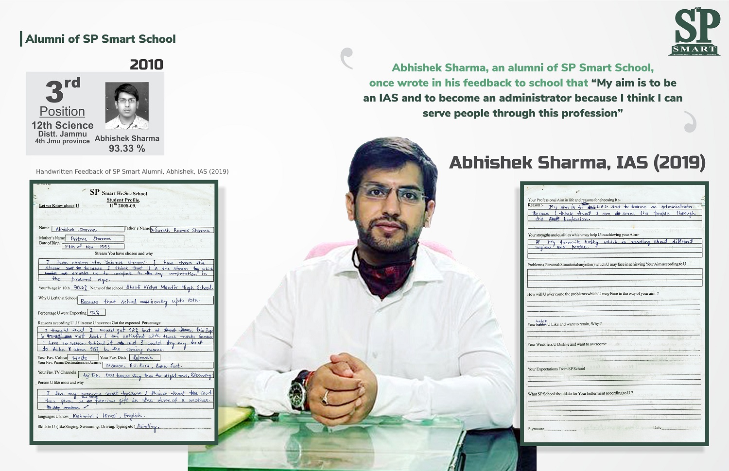 Alumni Connect Some of our outstanding performance of our Ex- SP smartians Results 2022 Class 8th Result 2022 Class 8th Result 2022 -Sidhra Branch Class 12th Result 2022 Class 12th Toppers 2022 - In News Class 10th Result 2022 Class 10th Toppers 2022 - In News Results 2021 Class 12th Result 2021 NEET Result 2021 Results 2020 NEET Selections 2020 Class 12th Board Results 2020 Class 10th Board Results 2020 (Summer Zone) SP Smartian Top 10 rank for class 10th Board Exam SP Smart Students Selected in Top Colleges Results 2019 IIT JEE & TOP ENGINEERING COLLEGES 2018-19 SELECTIONS NEET & GOVT MEDICAL COLLEGES IN 2018-19 SELECTIONS SELECTIONS IN UNIVERSITY OF DELHI 2019 CLASS 12TH BOARD RESULT 2019 CLASS 10TH BOARD RESULT 2019 Location Exchange Road Jammu | NH-1 Sarore | Tawi Vihar Sidhra | Talab Tillo | Bari Brahmana Our hours 08:00 AM – 04:00 PMMonday – Saturday Contact us Phone: 0191-2579226, 2564690, 2950936Email: office@spsmartschools.com Facebook-f Instagram Youtube