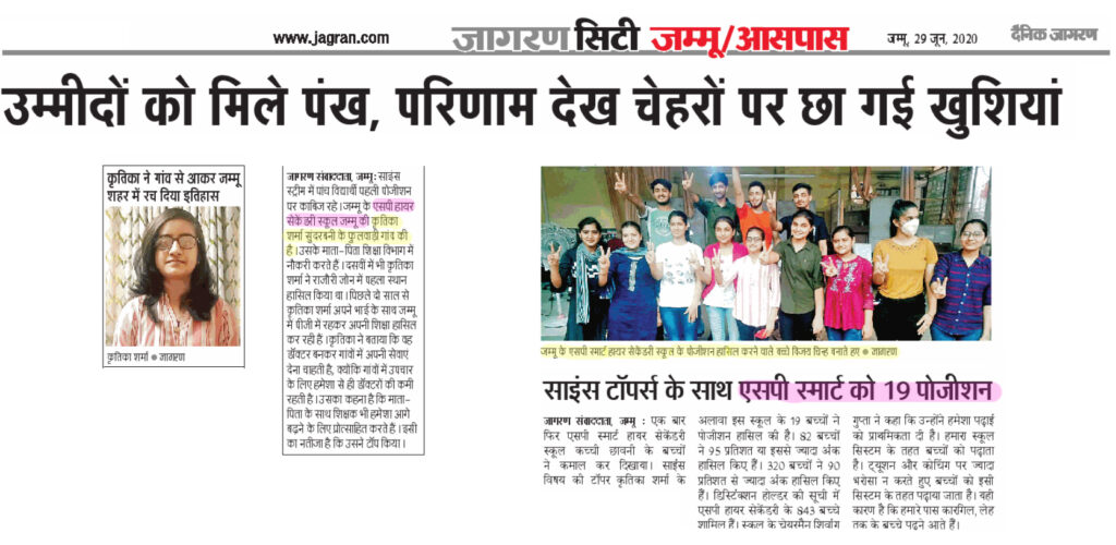 JKBOSE declared the result of class 10th students of SP Smart School Shined with Bright Colours